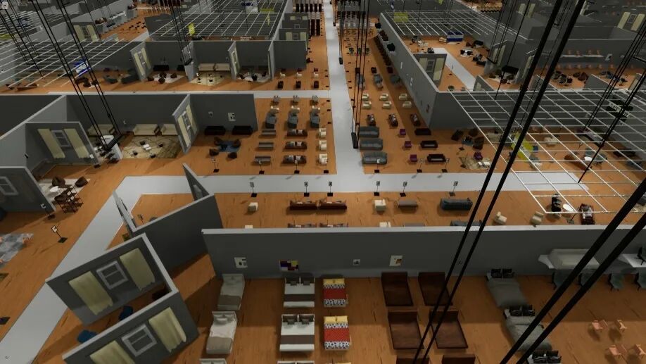 当然,游戏中确实设计了和宜家家具城里的灰色步道。家具分区摆设与指示用标牌,也和宜家的设计大致相仿。