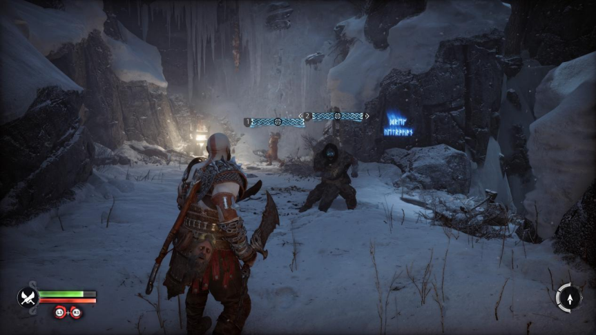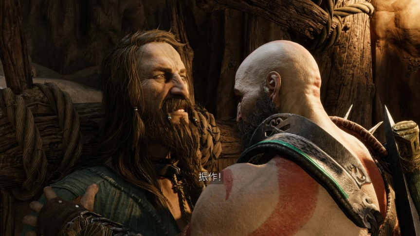 在前瞻评测里我已经提到过,本作中奎托斯父子初登场时,时间已经来到了前作故事结束的三年后。因为巴德尔的死亡,九界正陷入漫长的芬布尔之冬,北欧神话中代表众神末日的诸神黄昏,也即将降临九界。游戏序章开始后,依旧是以一长段的线性关卡和电影化的剧情演出,作为游戏初期的新手教程。从外出打猎到雪地遇险,再到前作结尾预告过的雷神索尔突然来访,整个序章在情节设计上虽然和前作的开场如出一辙,但无论是从演出的质量还是BOSS战的设计用心程度上来说,本作都已经实现了全面超越。