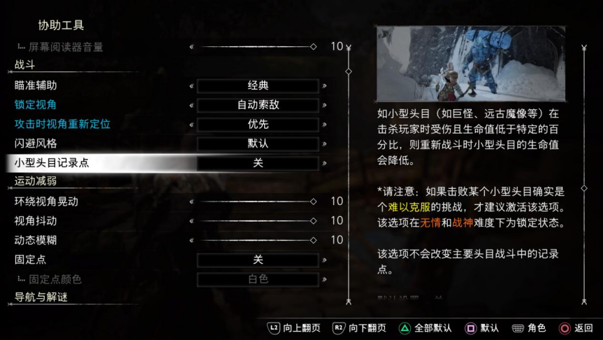 还有一点我个人比较满意的地方,那就是本作在游戏菜单里,加入了非常多的辅助功能选项。从基础的辅助瞄准和自动拾取,到通过声音提示玩家附近有可交互的内容,就连我一向不怎么用得到的DualSense手柄的触摸板,这次也可以根据不同的滑动方向,来设置对应的功能。这些辅助功能,虽然并不是每个玩家都用得上,但足以看出圣莫尼卡在游戏开发上的用心程度。