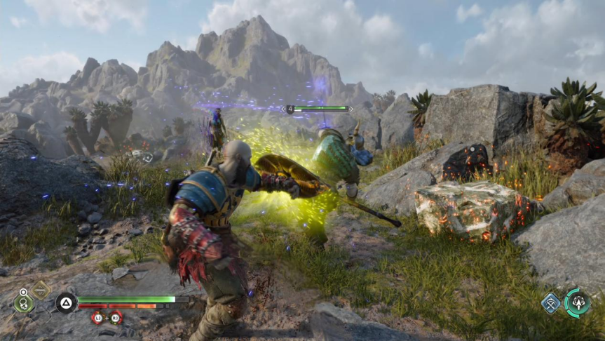 说到本作的战斗设计,它的核心依旧是使用不同武器所带来的元素伤害,将敌人打至“冰冻”“燃烧”“中毒”等异常状态,从而提升奎托斯击杀敌人的效率。