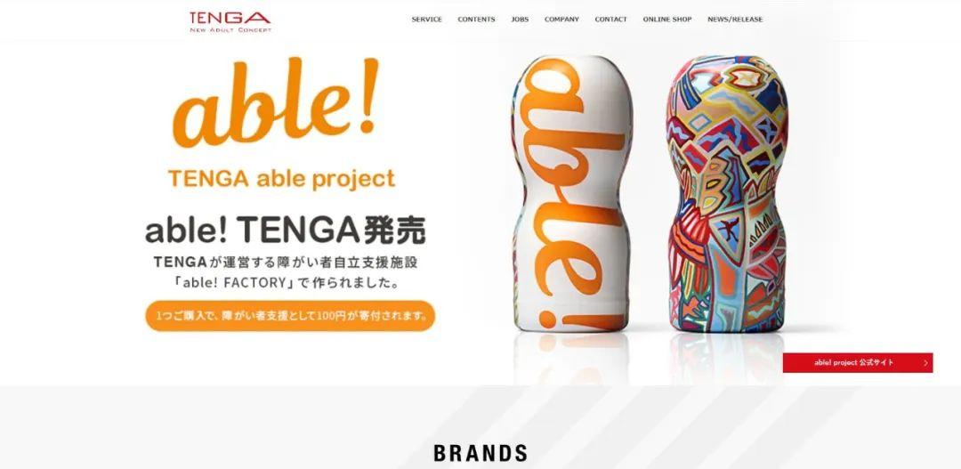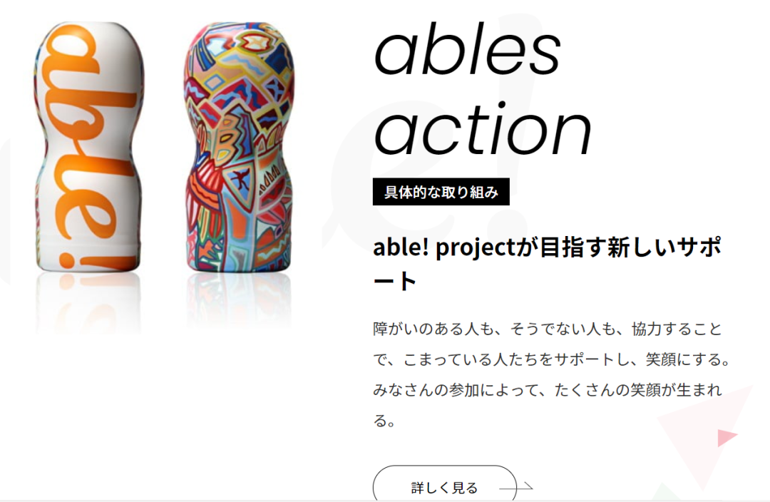 在TENGA官网的首页上,有一个非常显眼的名为“TENGA able project”的板块。里面的内容,就是TENGA专为那些身体残障人士提供的服务。