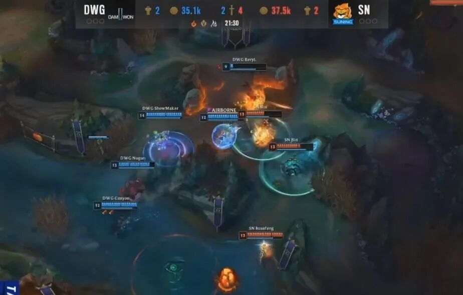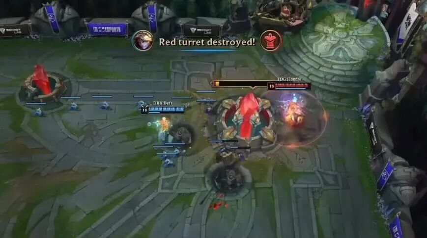 在8强对阵EDG的第2局,他一人来到对手的基地前,只差一下就能击碎基地拿下比赛的时候,对面的兵营水晶复活重新给基地套上了无敌BUFF,断绝了他结束比赛的希望,让他们以一秒的毫厘之差输掉了比赛。