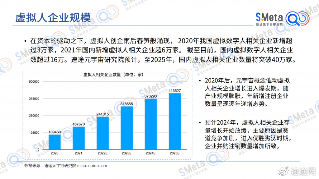 即便正处元宇宙的发展盘旋期,虚拟人也一直是元宇宙产业发展中最为稳定的赛道,伴随AIGC的爆火,虚拟人的行业表现也愈发出彩。《2022虚拟人产业研究报告》中预测,至2025年,国内虚拟人相关企业数量将突破40万家。