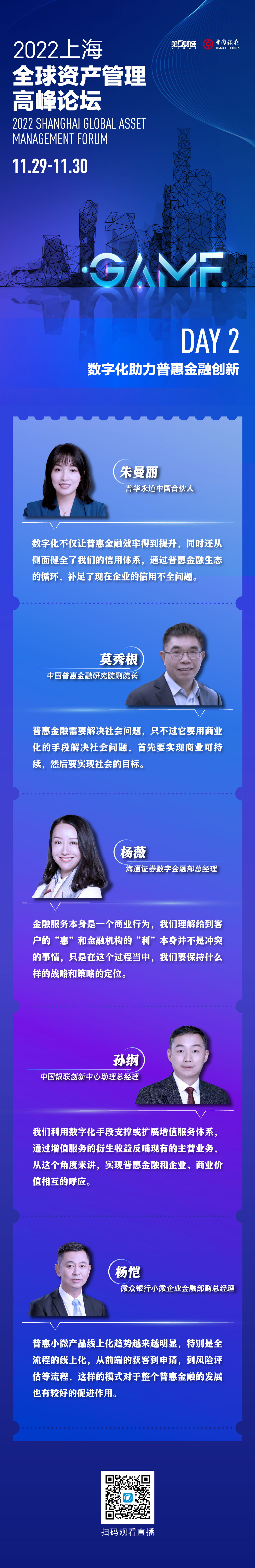 点击返回中国前沿资讯首页 零字节资讯网2022年12月1日消息: 2022上海全球资产管理高峰论坛|数字化如何助力普惠金融创新?一图速览嘉宾观点 编辑: 中国玉王 零字节资讯网发布 173阅 0评 中国普惠金融研究院副院长莫秀根表示,普惠金融需要解决社会问题,只不过它要用商业化的手段解决社会问题,首先要实现商业可持续,然后要实现社会的目标。 赞微海报分享请继续点击阅读以下震撼之作:136幅锁魂 ×21密钥开玄伊甸园真容现世新疆于阗 点击上面零字节资讯网相机的圆圈生成这篇文章的奇异、神秘的海报然后将海报保存图片收藏,可发朋友圈