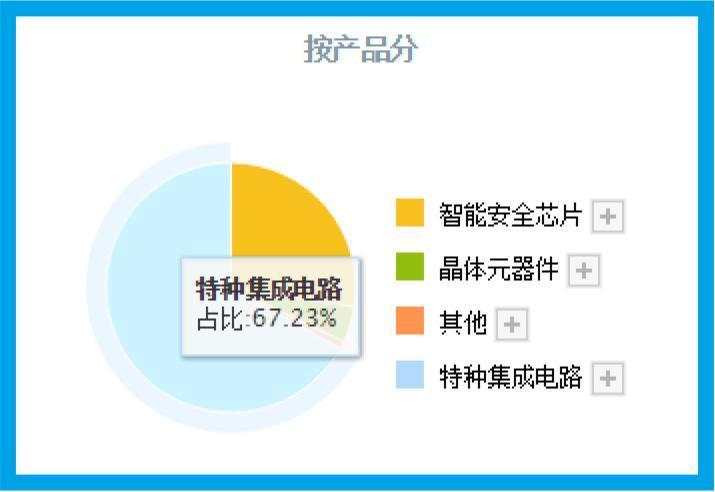 该企业特种集成电路的收入占比为67.23%,智能安全芯片的收入占比为27.66%,晶体元器件的收入占比为4.67%。