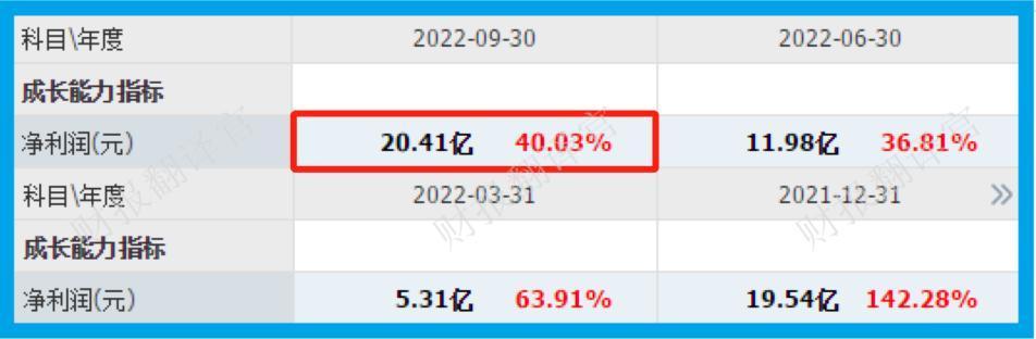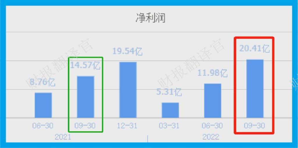 2021年第三季度,公司的业绩只有14.57亿元。到了2022年第三季度,该企业的净利润就达到了20.41亿元,同比增长了40%。