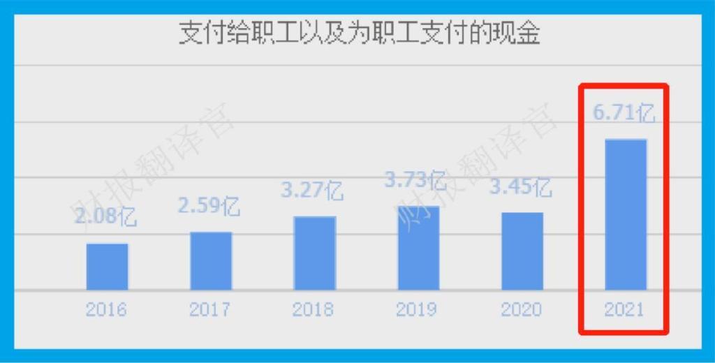在现金流量表中有一个指标叫支付给职工以及为职工支付的现金,它是记录一家公司每年为员工支付薪酬情况的。