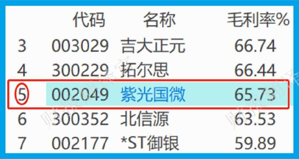 这家公司目前的销售毛利率,也就是安全芯片的利润空间,在A股数字货币概念板块68家上市企业中排名第5位。这个名次非常高,说明其产品的利润空间相对来说很大。