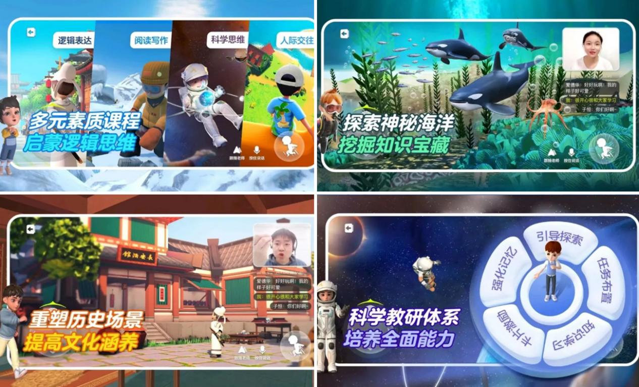 “少年创境”提供了多款元宇宙虚拟场景,如唐代的长安城、复原版的圆明园、山海经、西游记,甚至太空、海底、南极等场景。用户可以跨越时间和空间的限制,“穿越”到不同场景当中进行探索,在元宇宙场景下沉浸式学习能够充分激发产品给用户带来的极致兴趣体验。