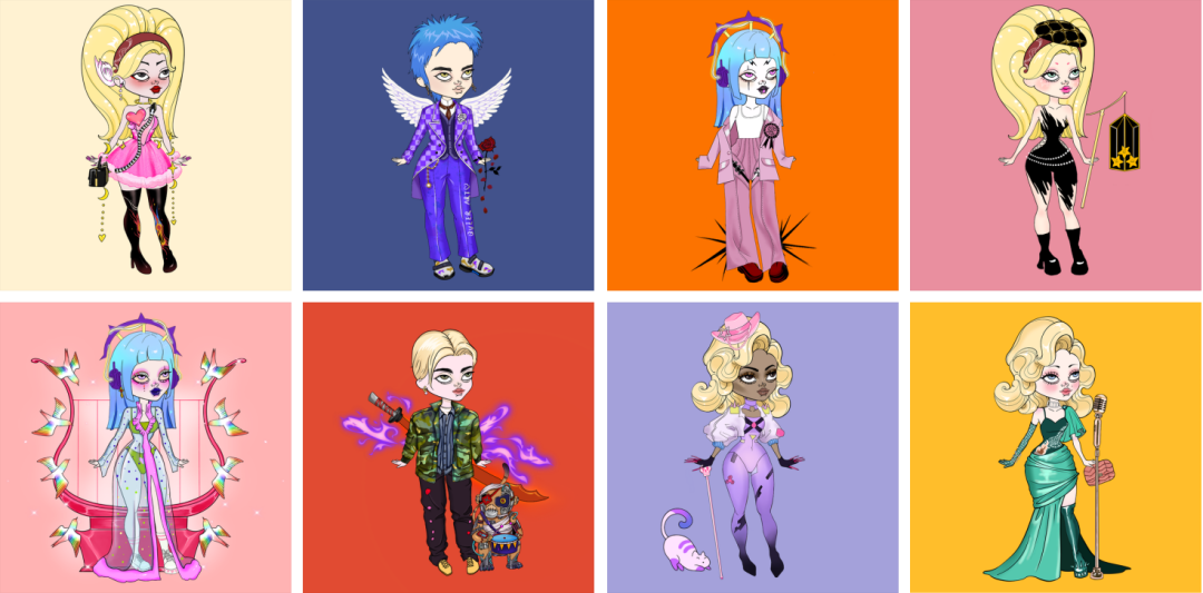 Theirsverse由16位艺术家合作完成,每张NFT拥有8-10层的不同组件,其基底为复古风满满的洋娃娃,9个系列的创作灵感非常多元,有致敬巨星的Superstar系列,弘扬中华文化的Dynasty与Yin-Yang系列,还有时尚元素拉满的Suit,Cyberpunk系列等。本项目体现出了创作团队天马行空的想象力与扎实的艺术创作功底。
