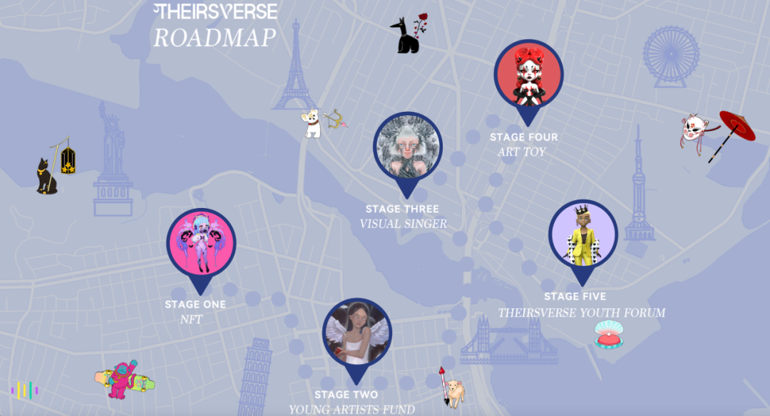 Theirsverse是一个由NFT、虚拟数字人、艺术玩具和元宇宙组成的多元Web3艺术平台,非常强调参与人群的多样性和包容性 。在这里,每个人都可以自由地表达自己,成为他们想成为的任何人。Theirsverse是在Opensea发行的5500 PFP NFT项目,以NFT的形式和艺术基因作为对全球社区成员的邀请函,邀请大家参与到一场艺术共创之旅,其完整的Roadmap也将随着时间的推移而逐渐呈现。