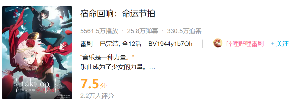 另一方面,《命运节拍》并不只是一部独立的动画,而是作为《宿命回响》这个跨媒体企划的先锋。原本紧接着动画播完,还将有一部手游《宿命回响:弦上的叹息》趁热打铁推出。但手游项目遭遇了搁置,直接跳票到了2023年。。