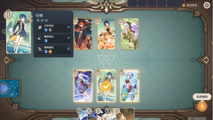 因为不存在费用成长机制,所以从第一回合开始,“七圣召唤”的对局双方就可以凭借手上的行动牌与资源(元素骰和充能),完成多次行动。而出战机制(只有出战的角色卡牌可以被直接伤害)的存在,让这个在同一回合内依次行动的设计,充满了勾心斗角与尔虞我诈,保证了“七圣召唤”的可玩性。