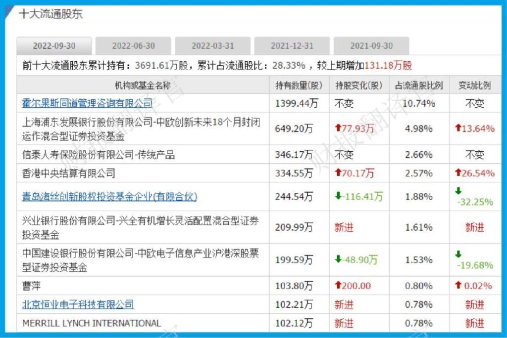 而从董秘的口中翻译官还得知,在公司的前十大流通股东中只有一个自然人,其余都是机构投资者。并且前十大流通股东累计持股,占流通股的比例为28.33%。