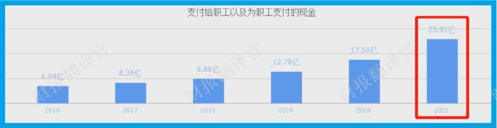 近些年来,这家企业每年为员工以及高管支付的薪酬持续增长,并在2021年以25.91亿元的薪酬创出了历史新高。
