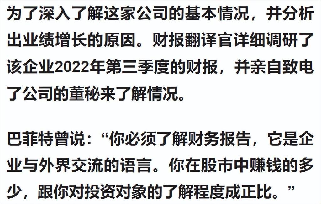 通过分析主要财务数据后翻译官发现,在2022年第三季度,这家企业净利润增长的主要原因是财务杠杆的放大。