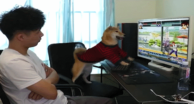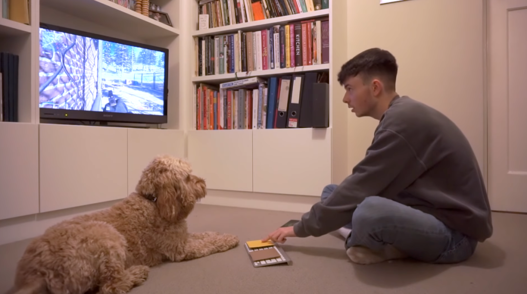 显然,很多动物已经在科研领域挑战人类水平了。但人类的宠物似乎没有太多脑容量来琢磨清楚这些――Youtube博主Will Archer曾试图让自己的狗狗学会玩《使命召唤》,又是简化键盘操作,又是用食物诱导训练,最后狗狗倒是真“杀”了几个站桩的AI。