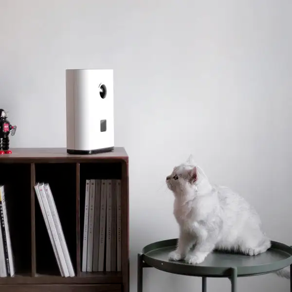 从官方给出的商品页面来看,该产品带有一块触控屏幕以及自动投喂器,而屏幕高度明显是提供给宠物使用的。