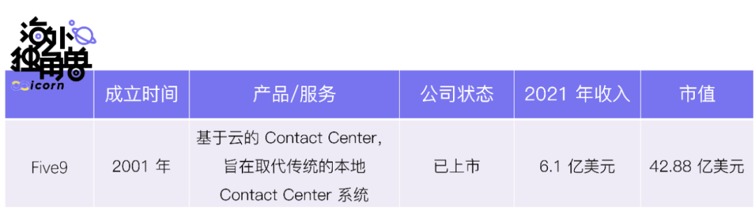 此前,Contact Center 以线下为主,随着越来越多的消费和服务转移至线上,以及疫情带来的远程办公的习惯,线下的 Contact Center 逐渐被替代,Contact Center 开启了线上化、软件化、云化的进程。Contact Center 云化带来了底层基础架构的改变,这也给初创企业带来新的机会 ―― 基于云的 Contact Center 平台开始兴起,代表公司是 Five9。