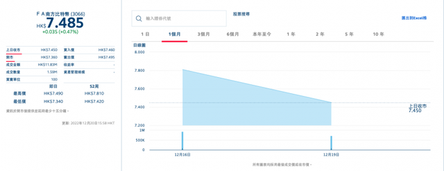 但两只产品很快便跌破了发行价,港交所数据显示,12月19日盘中,南方东英以太币期货ETF跌幅曾一度达到6.73%至7.280港元;同时,南方东英比特币期货ETF下跌4.23%至7.480港元。截至20日收盘,两只产品的价格小幅度回升,但依旧低于发行价。