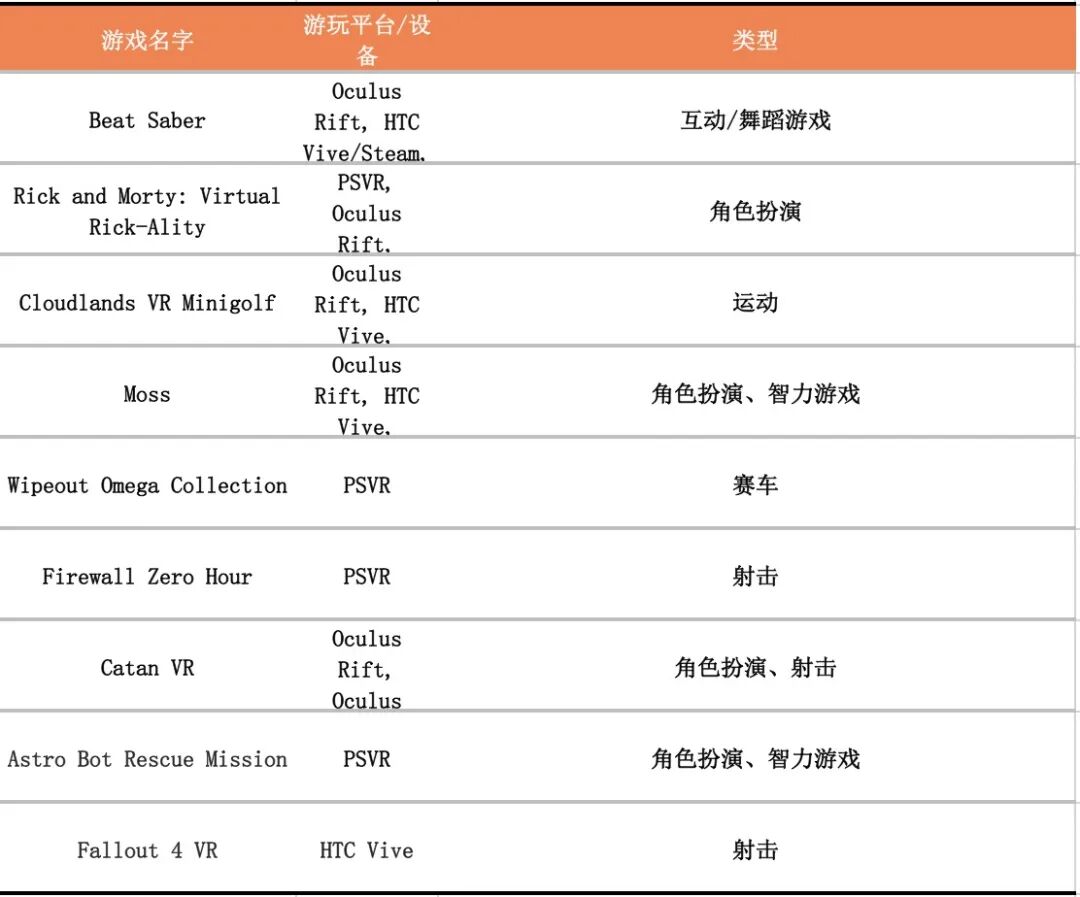 随着2020年元宇宙的异军突起,VR行业也得到了许多人的关注。当中VR游戏可以说是得到了许多人的关注,但实际上VR游戏就一直在推陈出新。国外知名科技网站PCMag就整理出了2022年火热的VR游戏,如下表(仅整理出部分火热的VR游戏)。