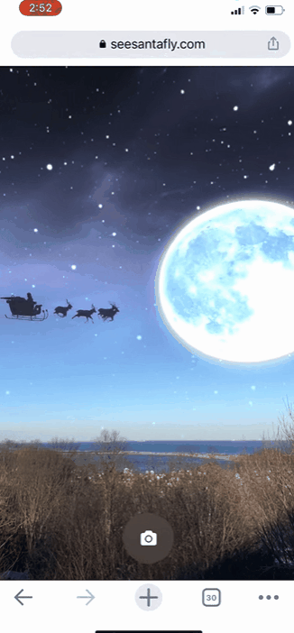 See Santa Fly由Niantic的WebAR平台8th Wall提供服务,用户可以使用智能手机的摄像头,看到驾驶空中雪橇的圣诞老人。Niantic提供的Sky Effects功能可以识别天空,并为其叠加AR场景。目前可以通过https://seesantafly.com/官网免费体验该AR滤镜。
