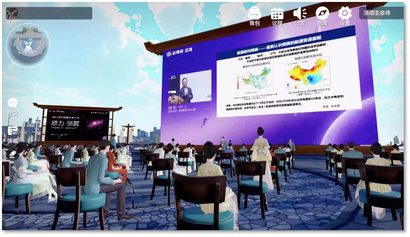 官方口径中,瑶台的定位是“沉浸式活动平台”,进一步释义为“用人工智能和科技创新打造全新的线上活动模式”。为此,瑶台上线了屏幕共享、PPT 嵌入式播放、实时翻译、视频畅聊、多分会场自由切换等功能,有一种在线教育、在线会议混合体的既视感,相较理想中能将人类的现实生活映射甚至超越现实的虚拟空间,瑶台更像是一个三维化的会议软件,只不过注入了虚拟空间和虚拟人等技术,刻画出了一个元宇宙的轮廓。