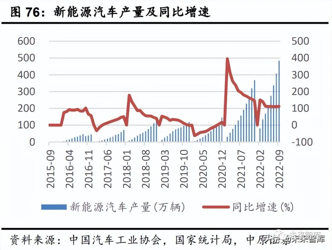 《新能源汽车产业发展规划(2021—2035 年)》提出,到 2025 年我国新能源汽车销量占比达 到 20%,到 2035 年我国新能源汽车销量占比达到 50%,现阶段我国已经提前三年完成新能源 汽车 2025 年渗透率目标,在“双碳”战略的大背景下,未来我国新能源汽车渗透率目标有望 超额完成。2022 年我国新能源汽车补贴较 2021 年下降 30%且将于年底退出,新能源汽车购置 税减免政策将延续到2023年,预计2023年新能源汽车销量依旧保持高增速但增速将略有放缓。