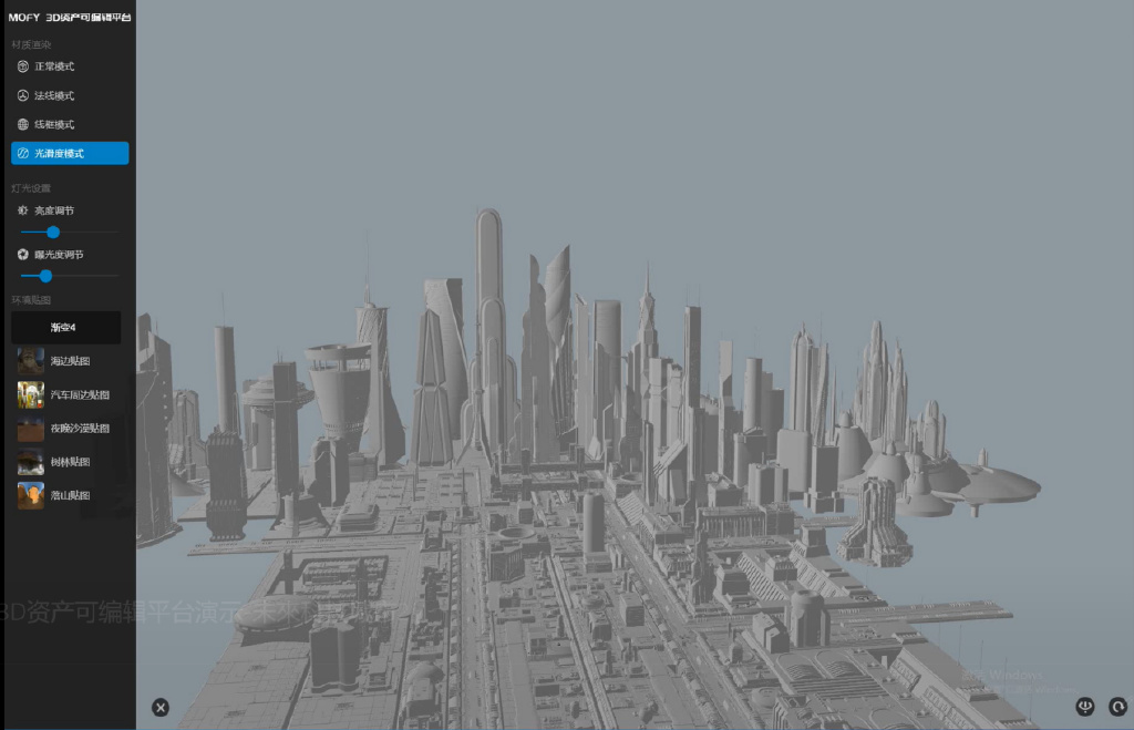 在MOFY LAB体系中,核心产品为环球墨非自主研发的MOFY 3D资产可编辑平台。MOFY 3D是提供三维资产的在线预览、上传、编辑、下载、三维资产管理的⼀体化可编辑平台,用户可以通过平台更好地展示3D模型的特性。MOFY 3D资产可编辑平台支持压缩包上传模型通用格式包括: fbx、obj等常见的 3D 软件格式;材质贴图格式包括:jpg 、png 格式UV-UDIM 序列贴图。环境贴图格式包括: hdr 或 exr 格式的图片。