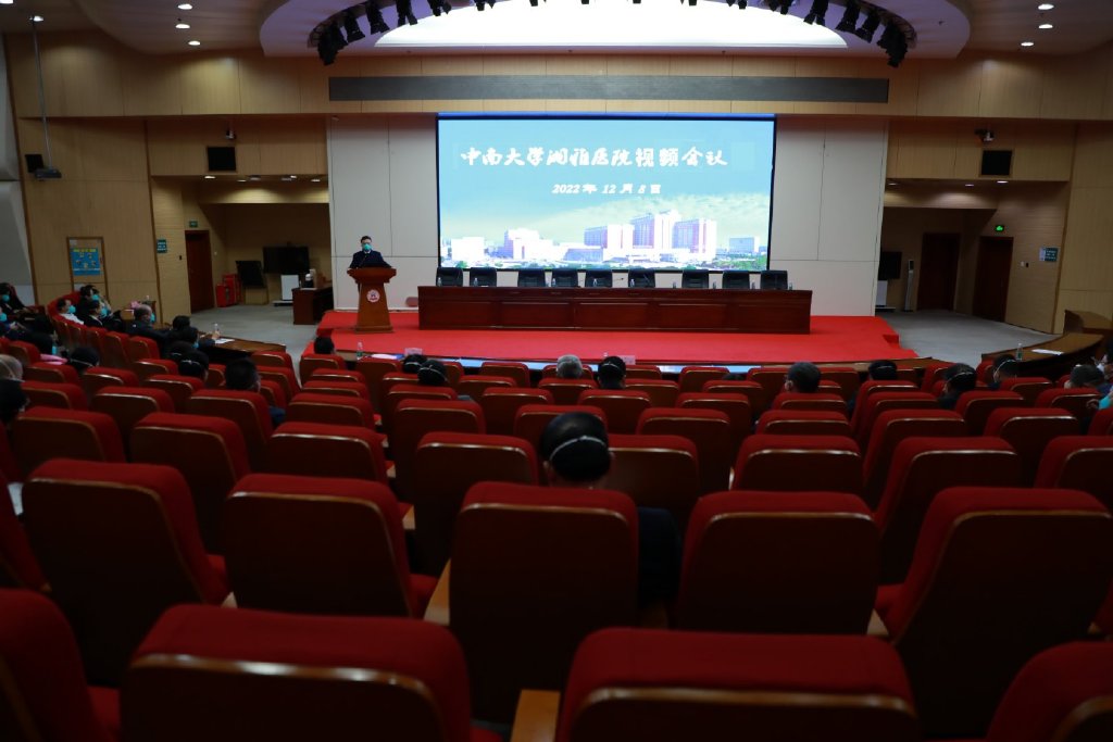 (2022年12月8日,中南大学湘雅医院召开全院视频大会,研究部署进一步优化疫情防控与医疗服务工作。)