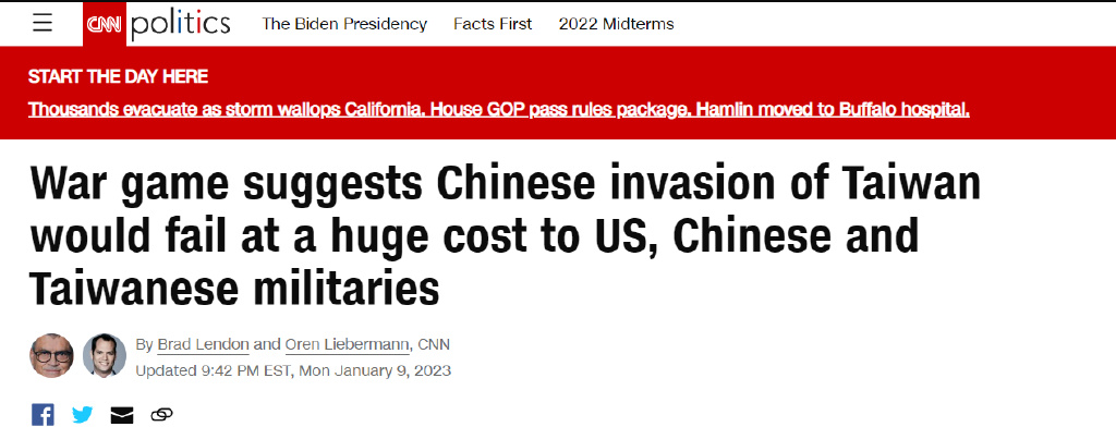 2022年1月9日,美顶级智库战略与国际问题研究中心(CSIS)在其官网上给出了一篇关于台海冲突的兵棋推演的“概略报告”,1月10日,CNN拿到了独家报道权,给出了大量兵推的数据,虽然CSIS尚未发布完整的报告,但仍然有台海冲突假设的参与方大量信息!