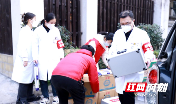 搬运慰问物资。走访慰问中,王迪建副院长嘘寒问暖话家常,了解老年人基础慢性病和近期身体状况,详细科普新冠感染防护、防治和康复保养知识,建议老年人一旦有突发情况,一定要及时去往医院。