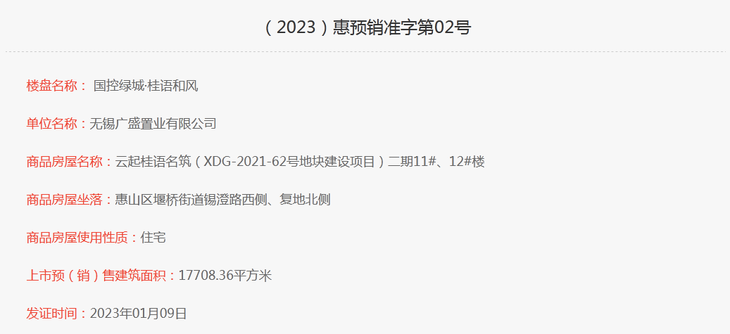就在临近春节不到10天的时间里,位于惠山新城板块国控绿城·桂语和风首次取得了预售许可证,11#、12#楼即将开售。