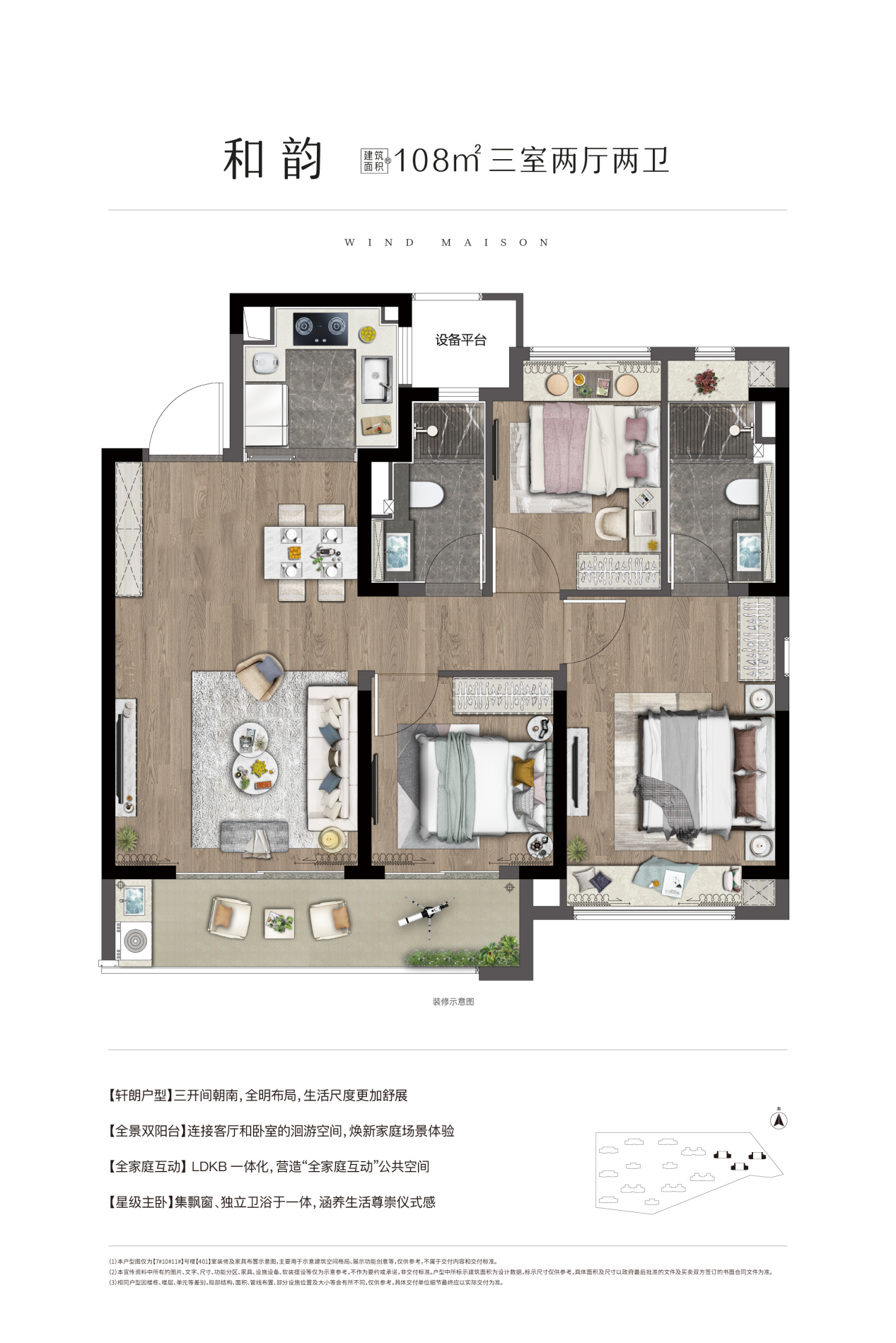 建面约108平(精装)3室2厅2卫