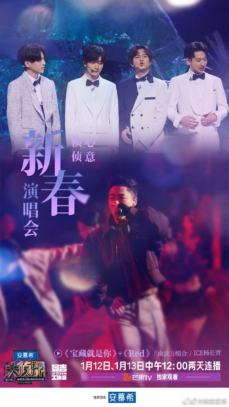 #大侦探8演唱会造型#大侦探8新春演唱会舞台海报释出,一如既往妆造满分,高级又有质感,男团女团齐齐上阵!中午见![]()