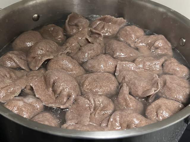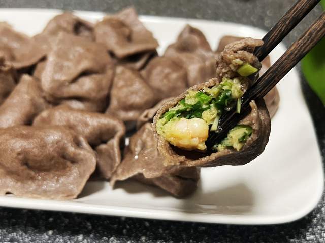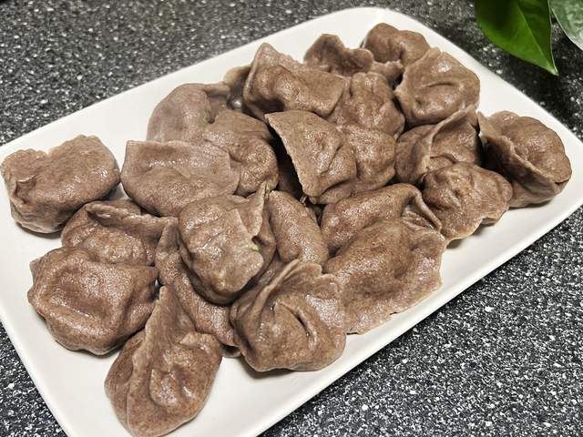 黑全麦饺子皮的三鲜饺子就做好了,别看皮黑,口感可不差,味道鲜美,最重要的是营养还好。