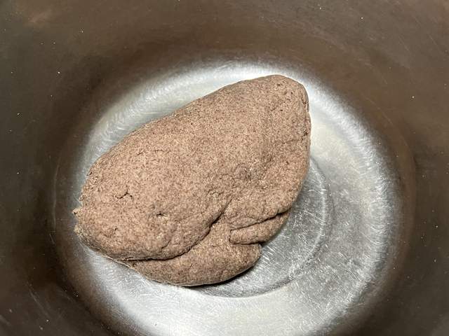 2、加水后揉成面团,刚揉的时候没那么光滑,盖上盖子放在一边醒面15分钟;