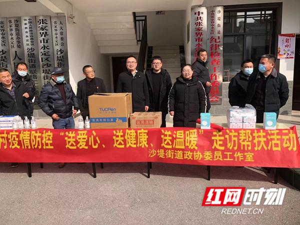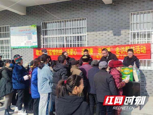 红网时刻张家界1月18日讯(通讯员 吴斌 孟颖)“正好家里人从外地回来的多,酒精、口罩帮助我们做好防疫,感谢你们!”,永定区沙堤街道沙田村黄伯伯激动地说道。1月17日,正值农历腊月二十六,回乡团聚的人员越来越多,为助力农村疫情防控,沙堤街道政协委员工作室在办事处机关大院和沙田村开展“送爱心、送健康、送温暖”活动。