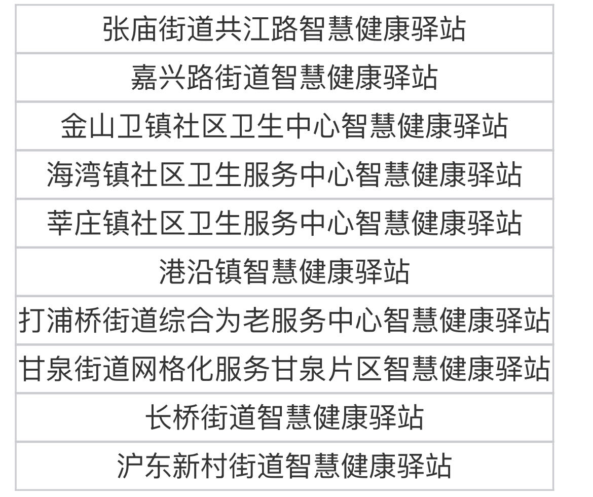 附“2022年度上海智慧健康驿站十大运行优秀奖”名单: