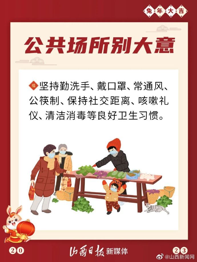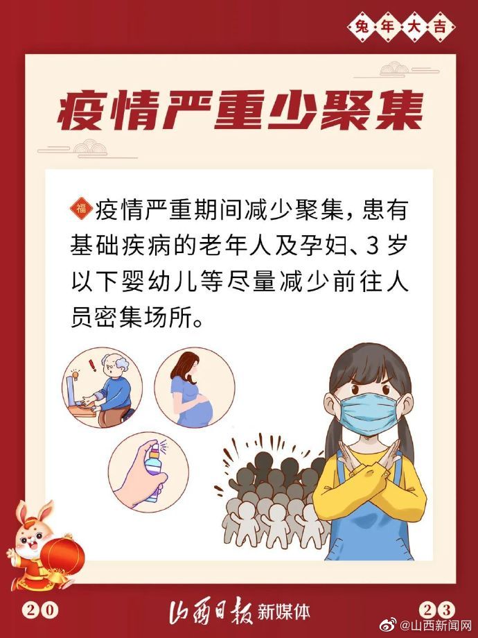 【海报丨勿忘防护 健康过年要记牢】春节将至,人员流动频繁,新冠病毒感染风险加大。春节期间,大家依然需要做好自我防护,这几点很重要↓(来源:山西日报)