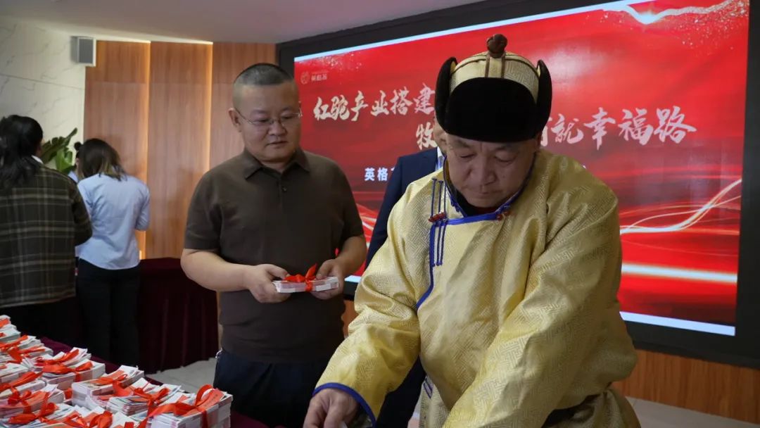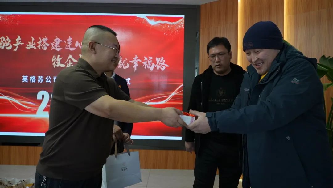 1月19日上午,乌拉特后旗内蒙古英格苏生物科技有限公司的红驼产业园区一派热闹景象,英格苏生物科技有限公司泌奶驼租金发放仪式正在这里举行,领上租金的牧民们脸上洋溢着幸福的笑容。