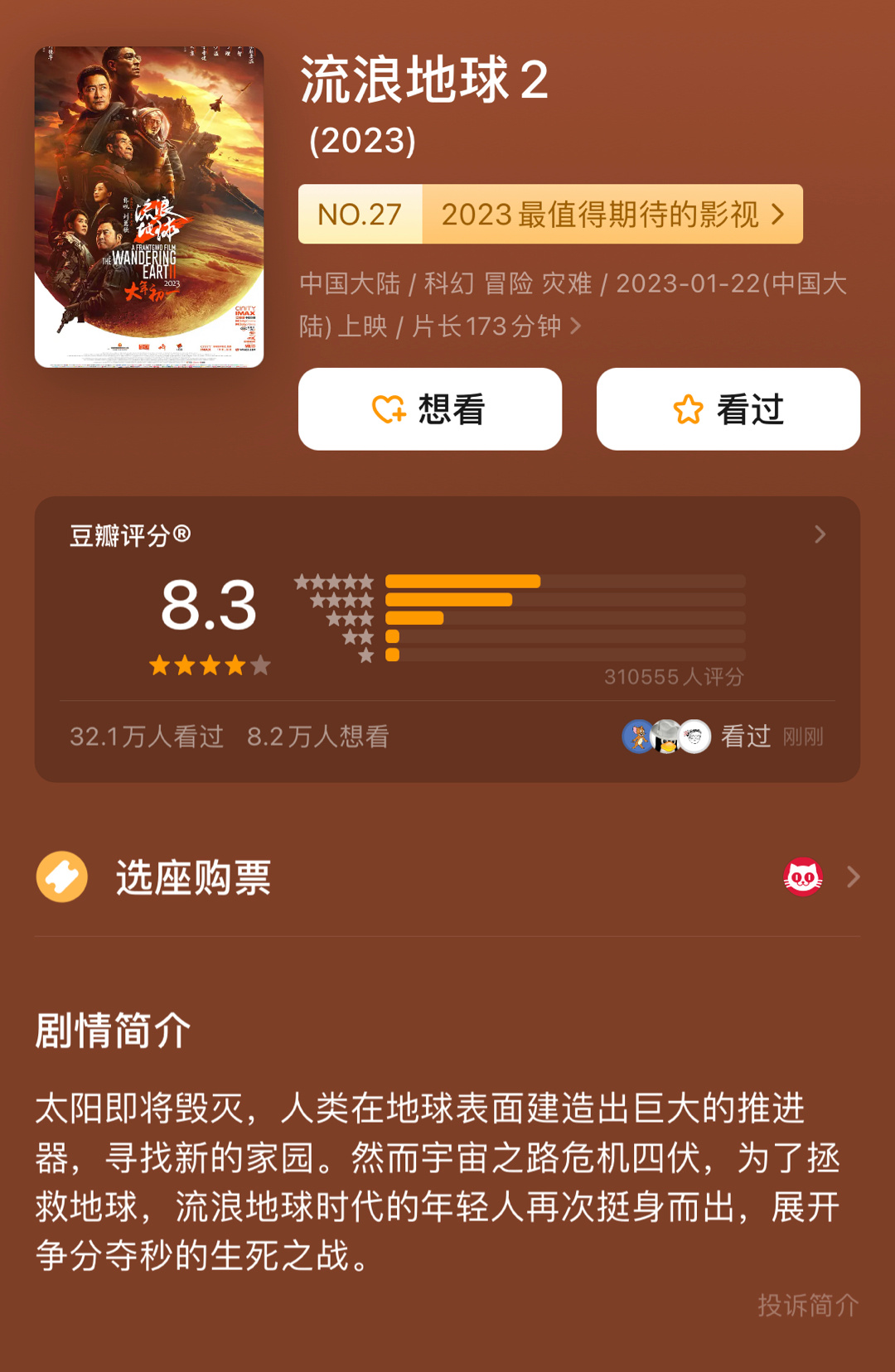 吴京、刘德华《流浪地球2》8.3