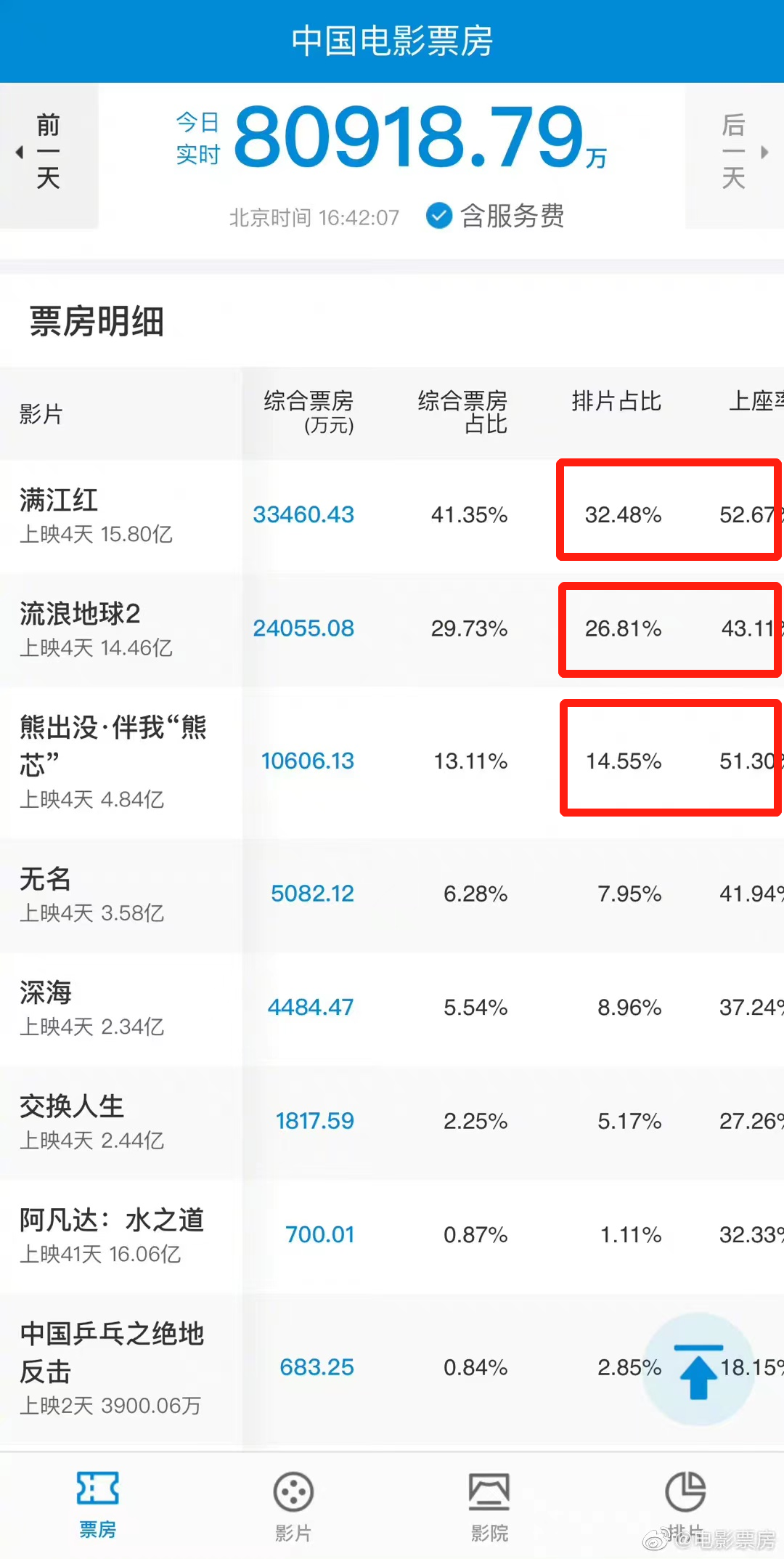 这也是为什么同期上映的这几部电影,熊出没排片量算低的,但是上座率不错