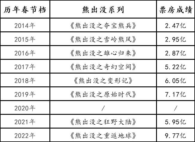 就这还没将2022年春节档9.77亿票房的「熊出没之重返地球」算进去