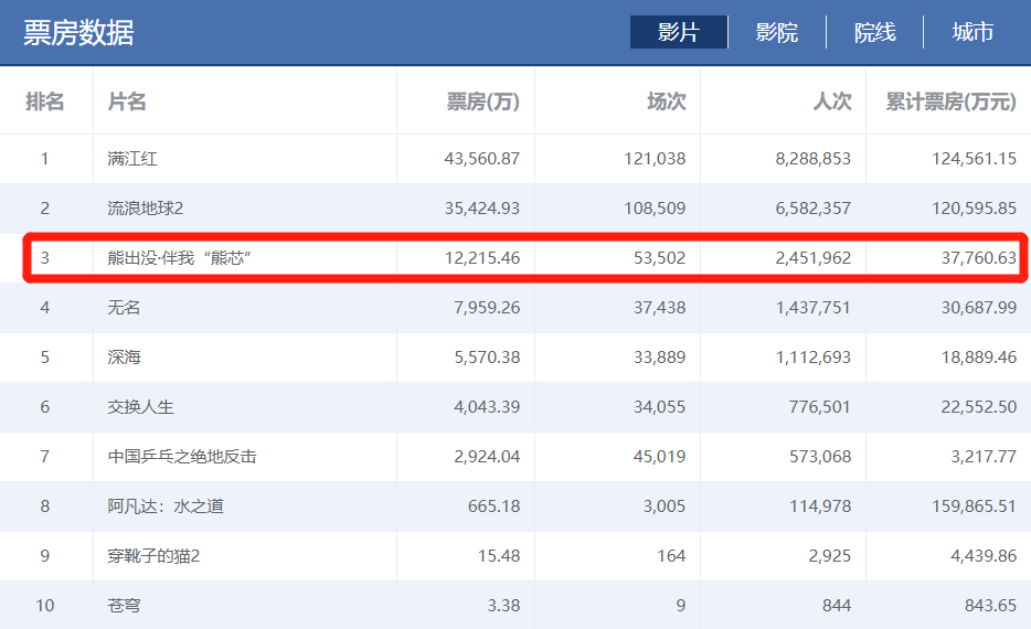 所以跟其他「流浪地球2」、「满江红」这种卖一张、两张不同,熊出没一出基本三张四张