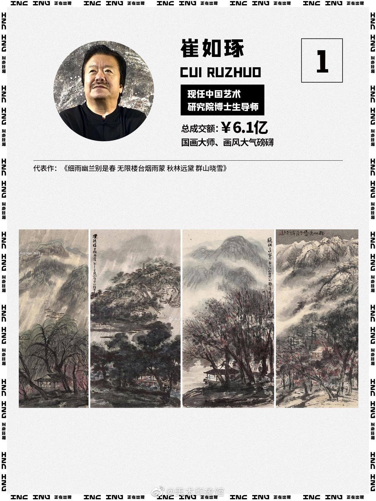 2022胡润中国艺术榜,排名了中国在过去一年里作品总成交额最高的艺术家,不仅可以让我们了解当代艺术作品的情况,也能为我们的艺术收藏提供参考。 快看看你pick的艺术家有没有上榜! #中国当代艺术##艺术家作品#