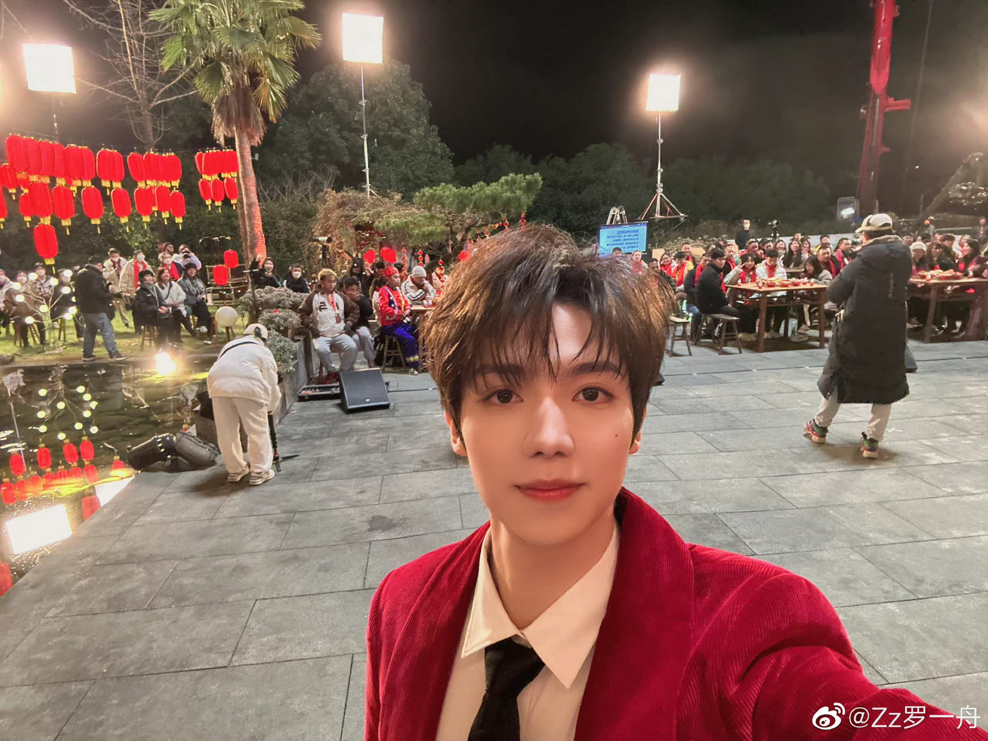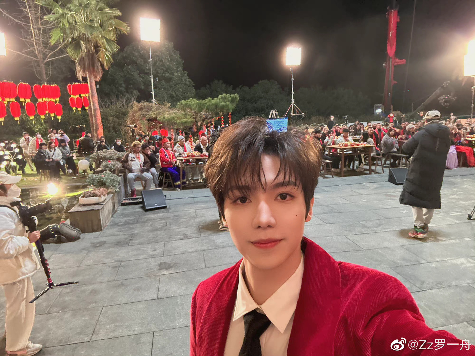 #罗一舟晒红西装自拍两宫格# |#罗一舟万家灯火幸福年#