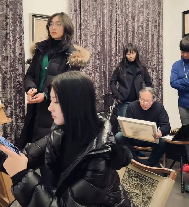 在徐锦江的前方有两位长相漂亮且打扮简单的美女,从两人作画的神态以及出现的地点来分析,她们应该是徐锦江的学生。