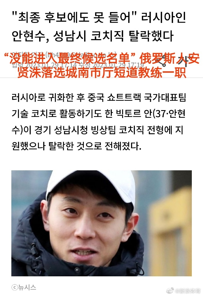 #安贤洙落选韩国城南市厅短道教练# 韩媒最新消息称,进入最终候选名单的只有2-3人,安贤洙不在其中。韩媒还指,城南市厅短道速滑队不仅看重候选人的技术能力,还看重候选人的领导能力和他与运动员之间的沟通交流能力。via:@风闻社区