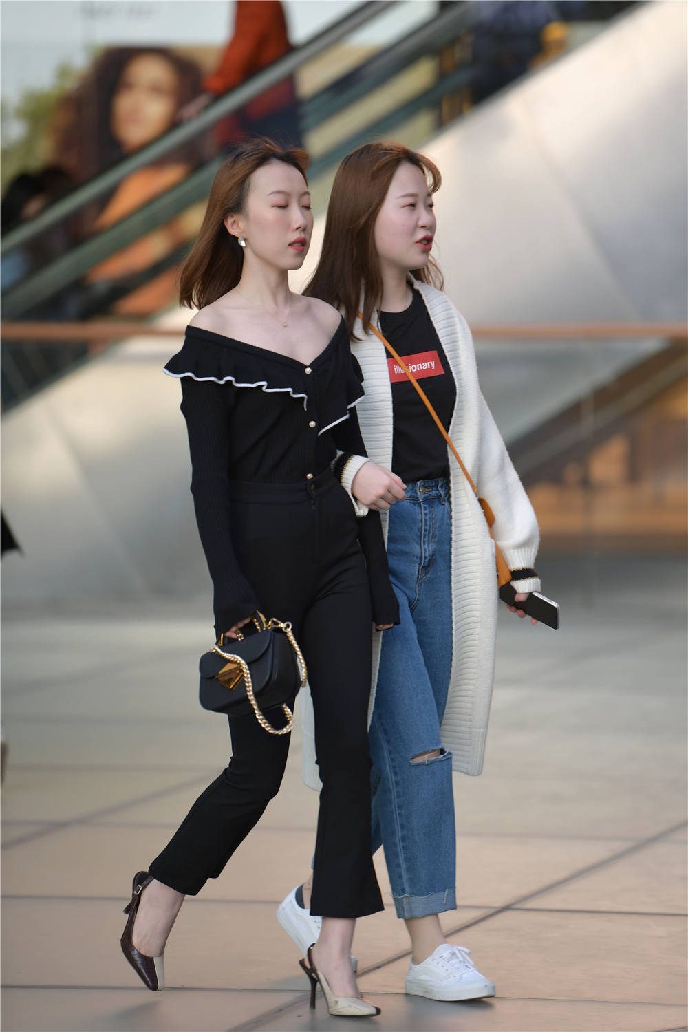 好多美女穿着高跟鞋,也会更加自信,穿搭是要有点自己的想法的,这位美女选择黑色的米色拼接的细高跟凉鞋,色彩很特别,中间拼接的设计,不一样的色彩,带来不一样的改变,8厘米的高度,衬托身材效果不错,搭配出简约的风格,一条黑色的小喇叭裤,七分的长度,更好衬托脚下的高跟鞋,也是对自己身材的自信,黑色的大领口衬衣,飞边上有点白色镶嵌,增加点缀。
